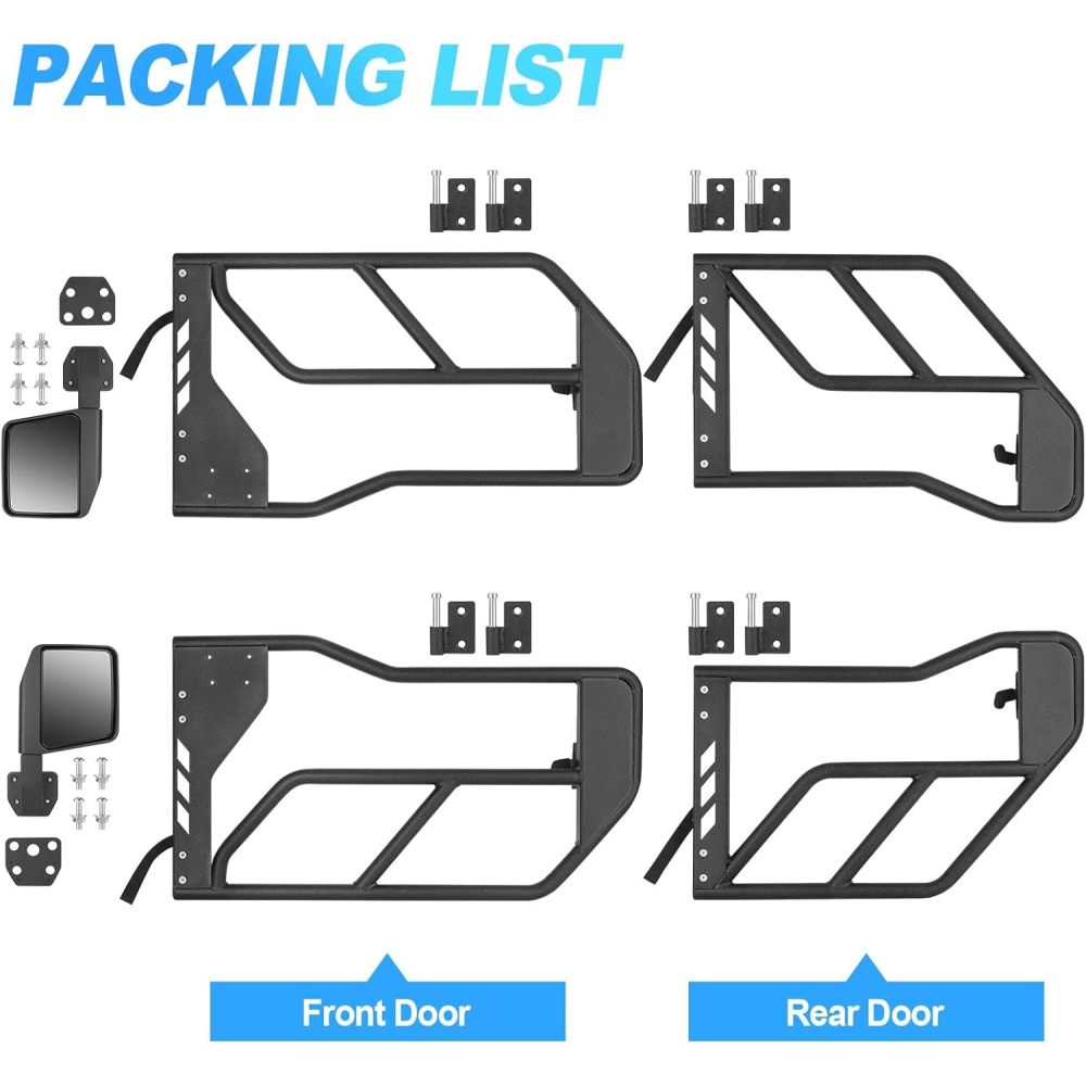 Tube Doors with Side View Mirror for 2018-2024 Jeep Wrangler JL JLU & Gladiator JT 4-Doors (Includes 4XE) 4-piece set Off Road Summer Trail Adventure
