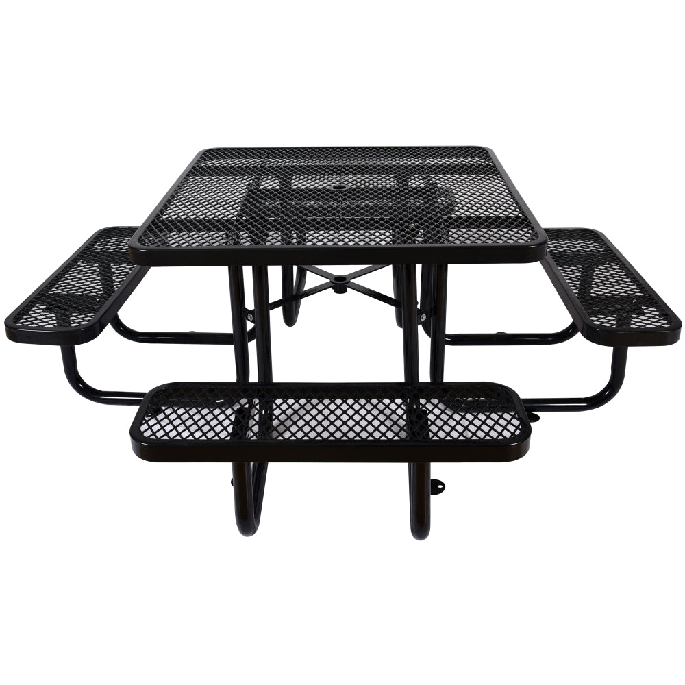 Square Outdoor Steel Picnic Table 46" black ,with umbrella pole