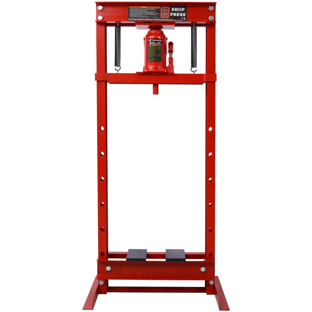 • Precise Control and Safety Features: Featuring a hydraulic piston that effortlessly applies up to 20 tons of force, our shop press ensures precise control over the pressing process. The adjustable lower press plate and ram height provide flexibility to accommodate various workpieces, while the integrated safety overload valve prevents damage from exceeding the maximum capacity.