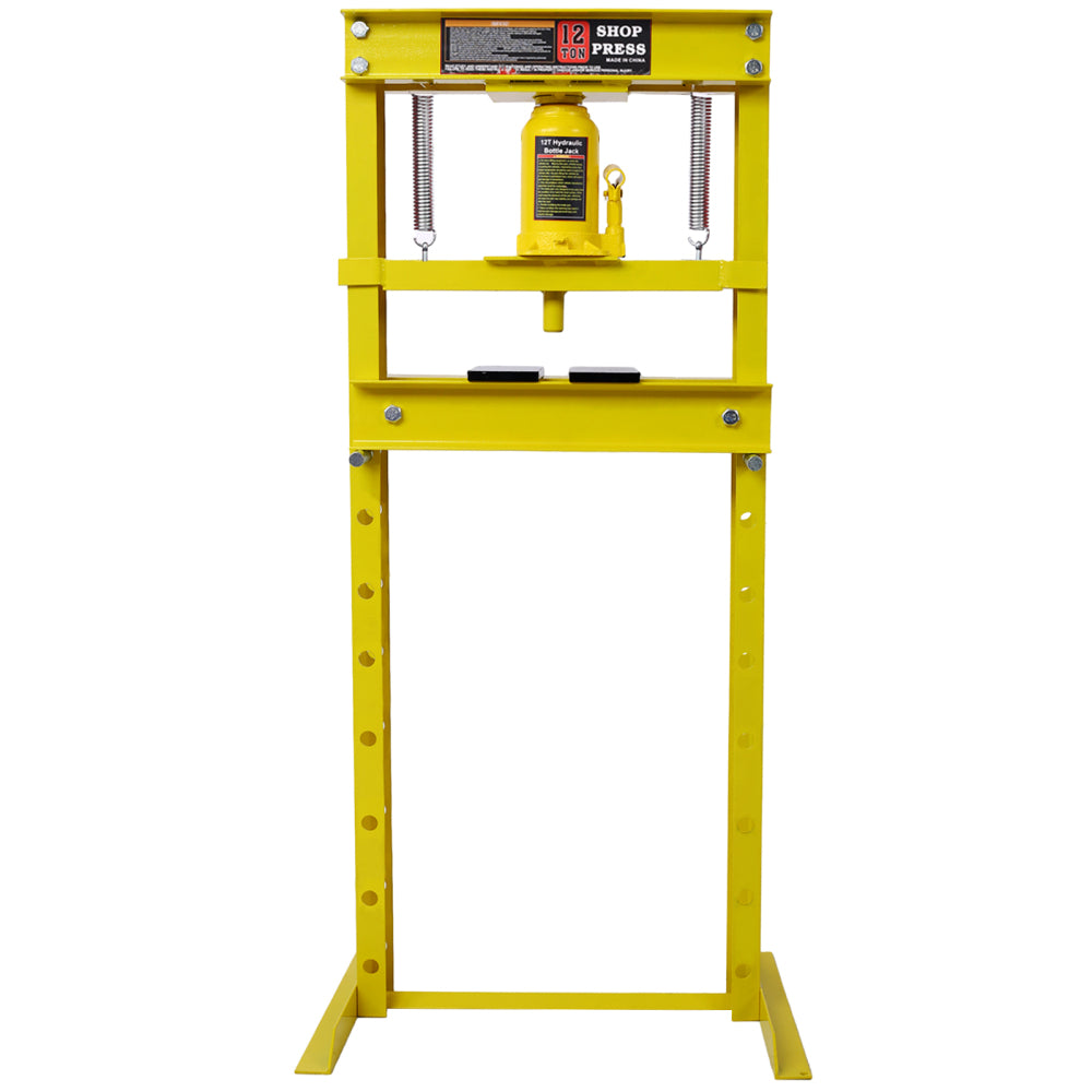 - Powerful 12-ton capacity: Equipped with a heavy-duty bottle jack with a 12-ton capacity, our hydraulic press is designed to effortlessly handle tasks like straightening and bending metal. It also comes with press plates for added convenience.