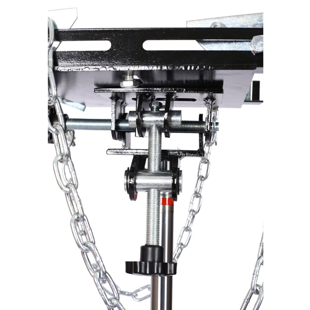 - [TWO STAGE TRANSMISSION JACK] - telescopic two-stage hydraulic ram, wide 4-leg base with swivel casters for stability and easy movement. Foot pedal easily raises qiuckly under load and provides safe and controlled lowering of load