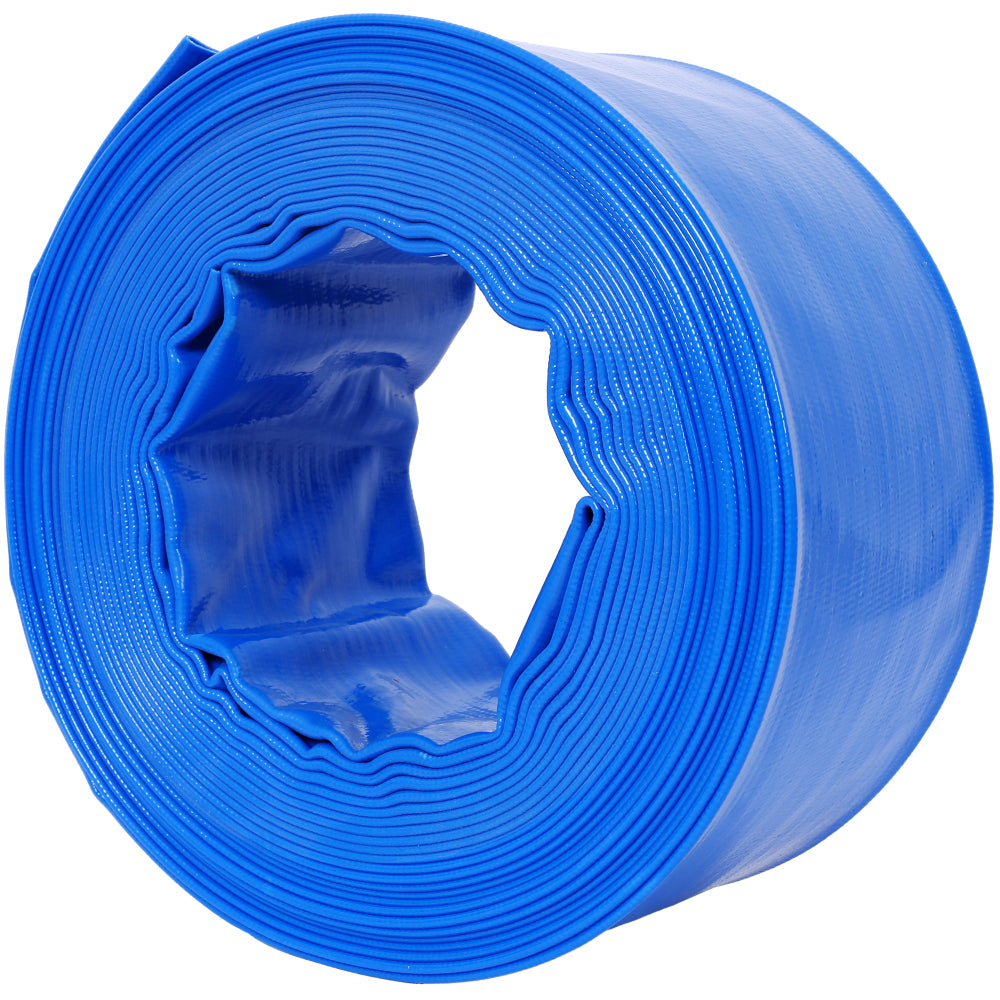 - Backwash and Discharge HoseDiameter: 3 inches Flat Width: 4.8 in Length: 50 feet Working Pressure: 90 PSI Temperature Range: 23°F to 149°F (-5°C to 65°C)Fits: Be sure to measure your equipment outlet to ensure proper fit before ordering. It must be 3 in or less; otherwise, you will need an adaptor.